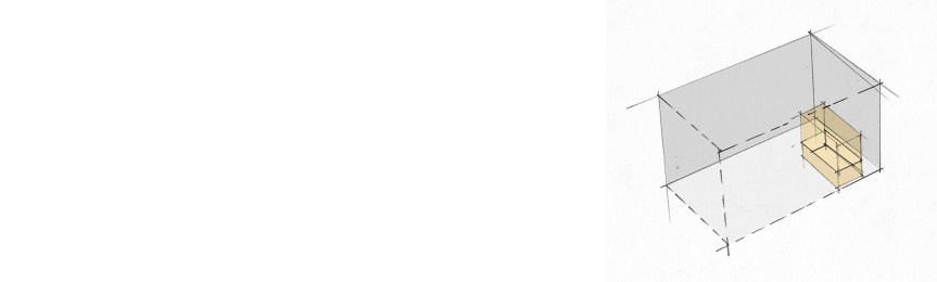 Space with a space : A theme I am currently exploring where one can perceive two spaces simultaneously. Even though the smaller space is embedded inside the larger one, both have distinct sense of enclosure independent of each other. The original trigger was the reading of the Orinda House designed by Charles Moore, in which the two rooms (the bathroom and living) are embedded as pavilions with in the larger perimeter of the house. The thematic idea is to explore of the condition of ‘simultaneity’ in crafting of space
