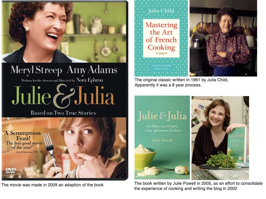 For Julie, this way of cooking and aligning to a school of thought became the point of entry whereas the same premise of cooking became a point of departure for Julia. I feel this notion extends across all the creative fields. We can start from a point which resonates with us.