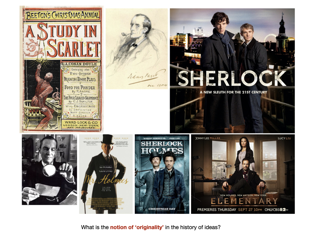Here is a slide i use recurring-ly in my theory classes, which became base on which i am folding these questions discussed above – What is notion of originality in the history of ideas? – Take the instance of the British version of the Sherlock. They made a brilliant adaption, just by changing the context of time. We would have been devoid of this project, if they had brushed this as a naive, or not an idea original enough to be pursued. This is a very fragile stage in every creative process, and one has to deal with it delicately.
