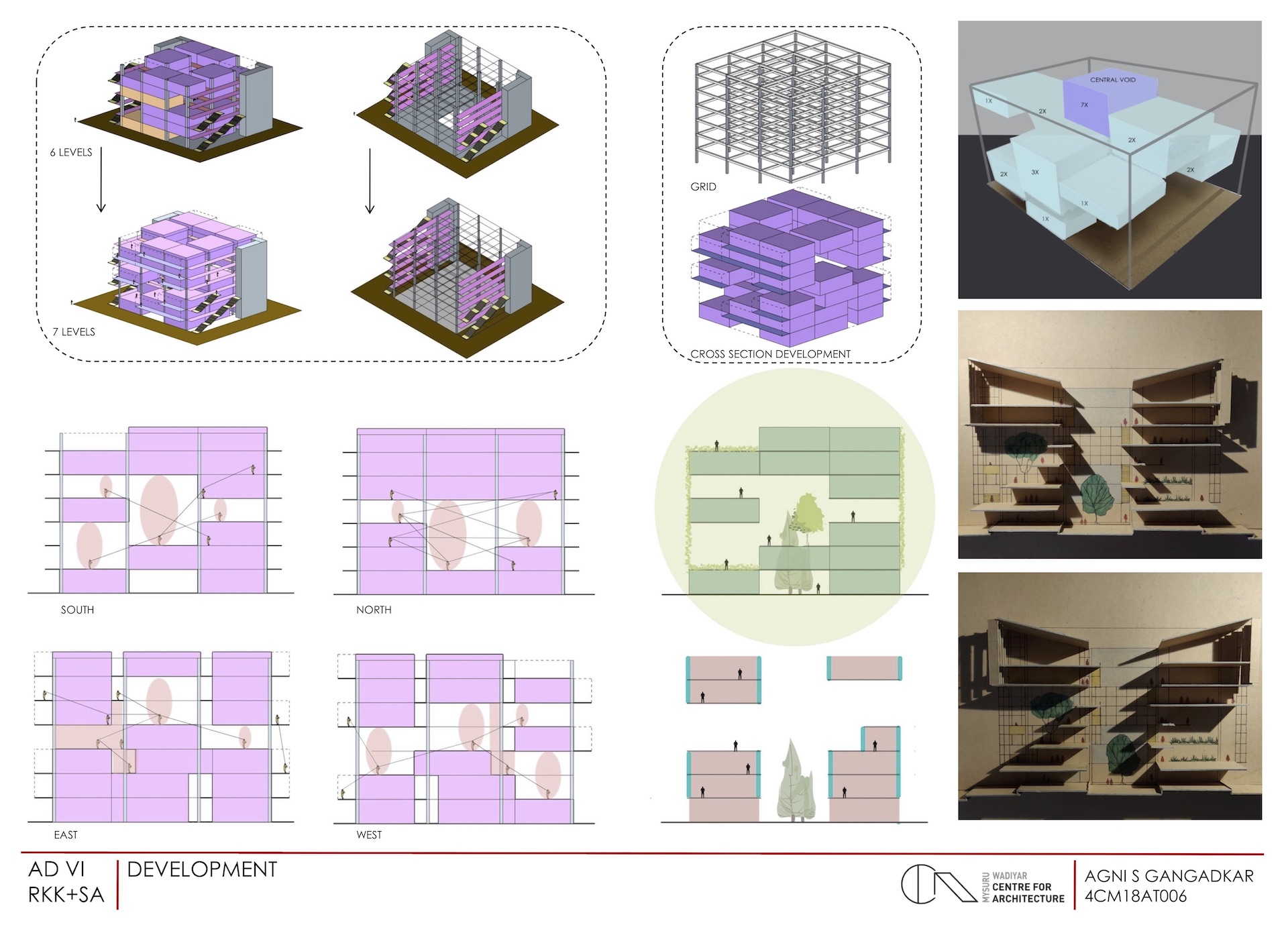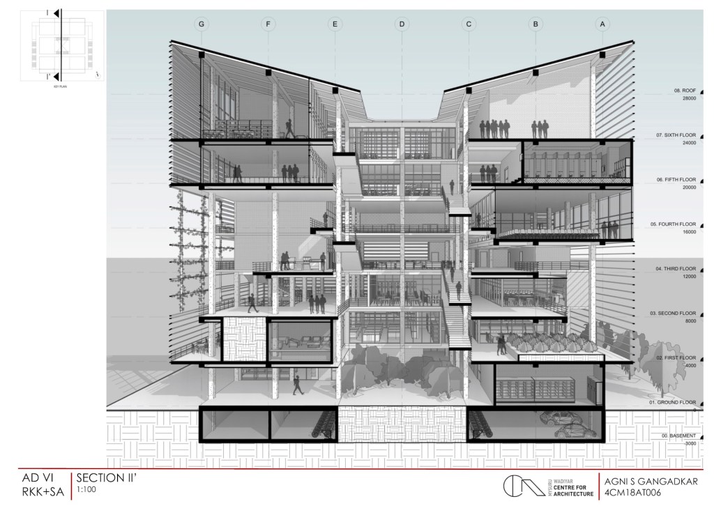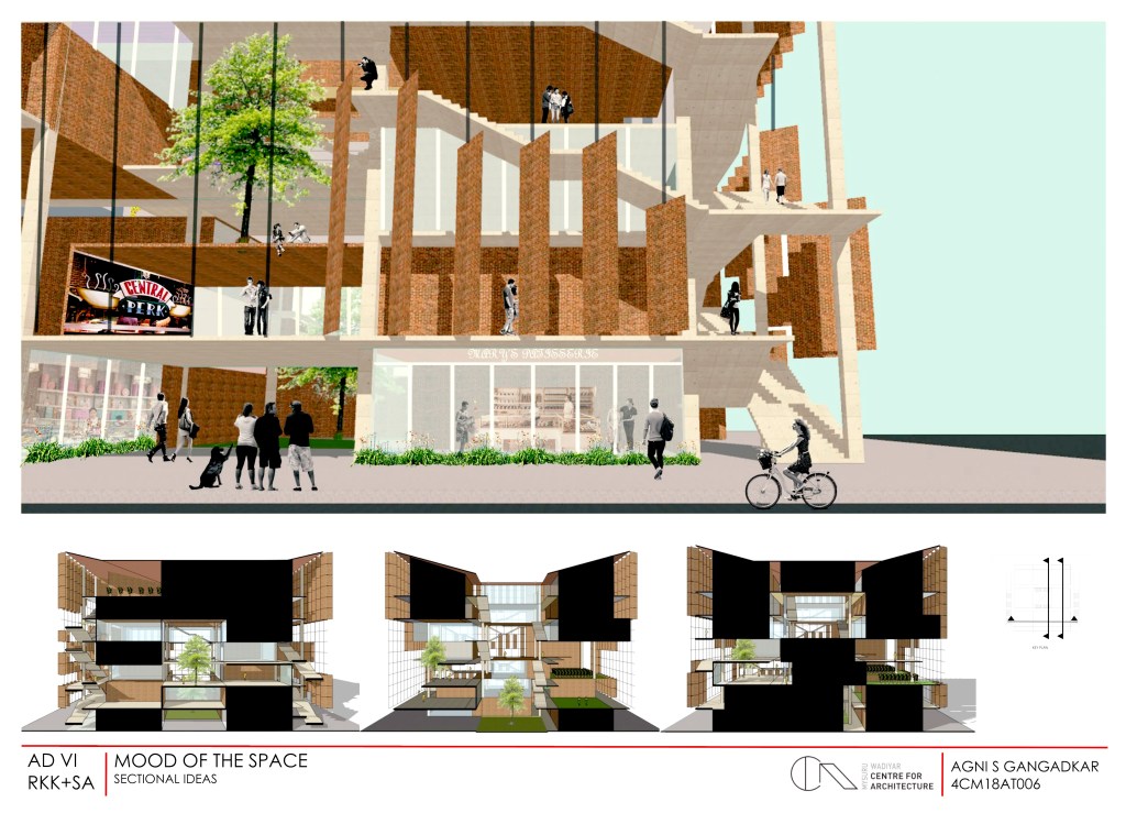 In continuation to the previous post on framework for the brief of Semester 6, here is the attempt by Agni to respond to that enquiry. Agni explored both the possibilities of the grid in plan and section to create social spaces of different scale within the built form. The circulation smartly navigated the mixed use program enhancing and revealing the qualities of the publicness. And each of these spaces were were made distinct by the degrees (materiality, translucency) of the enclosure.